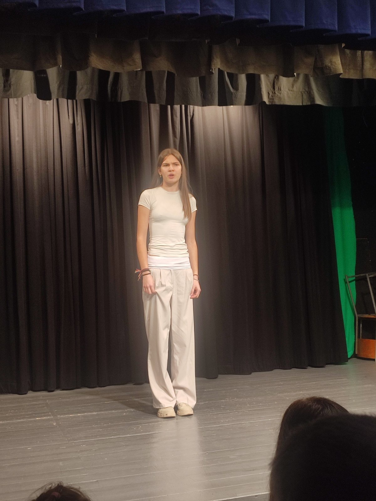 Divadlo je pro mě důležitý způsob sebevyjádření, učí mě spolupráci, kreativitě i větší jistotě při vystupování před lidmi. Když stojím na jevišti, cítím se sama sebou a divadlo mi dává prostor se rozvíjet, učit se spolupráci a objevovat co všechno dokážu.
